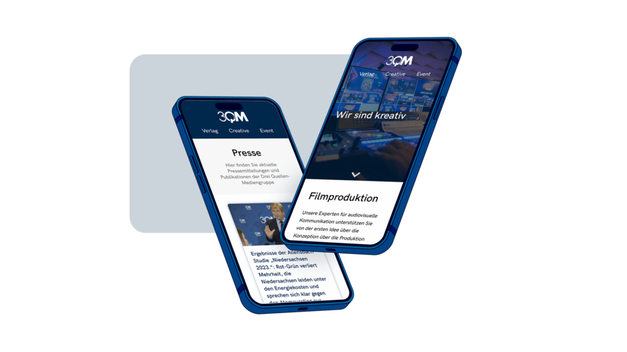 Die Drei-Quellen Mediengruppe vereint drei starke Geschäftsfelder unter einem Dach: Verlagsarbeit, Eventorganisation und kreative Kommunikationsleistungen. Ziel des Relaunchs war es, diese Bereiche nicht nur strukturiert darzustellen, sondern sie auch gestalterisch in Einklang zu bringen – zwischen Seriosität und gestalterischer Freiheit, zwischen journalistischem Anspruch und kreativer Umsetzung.
